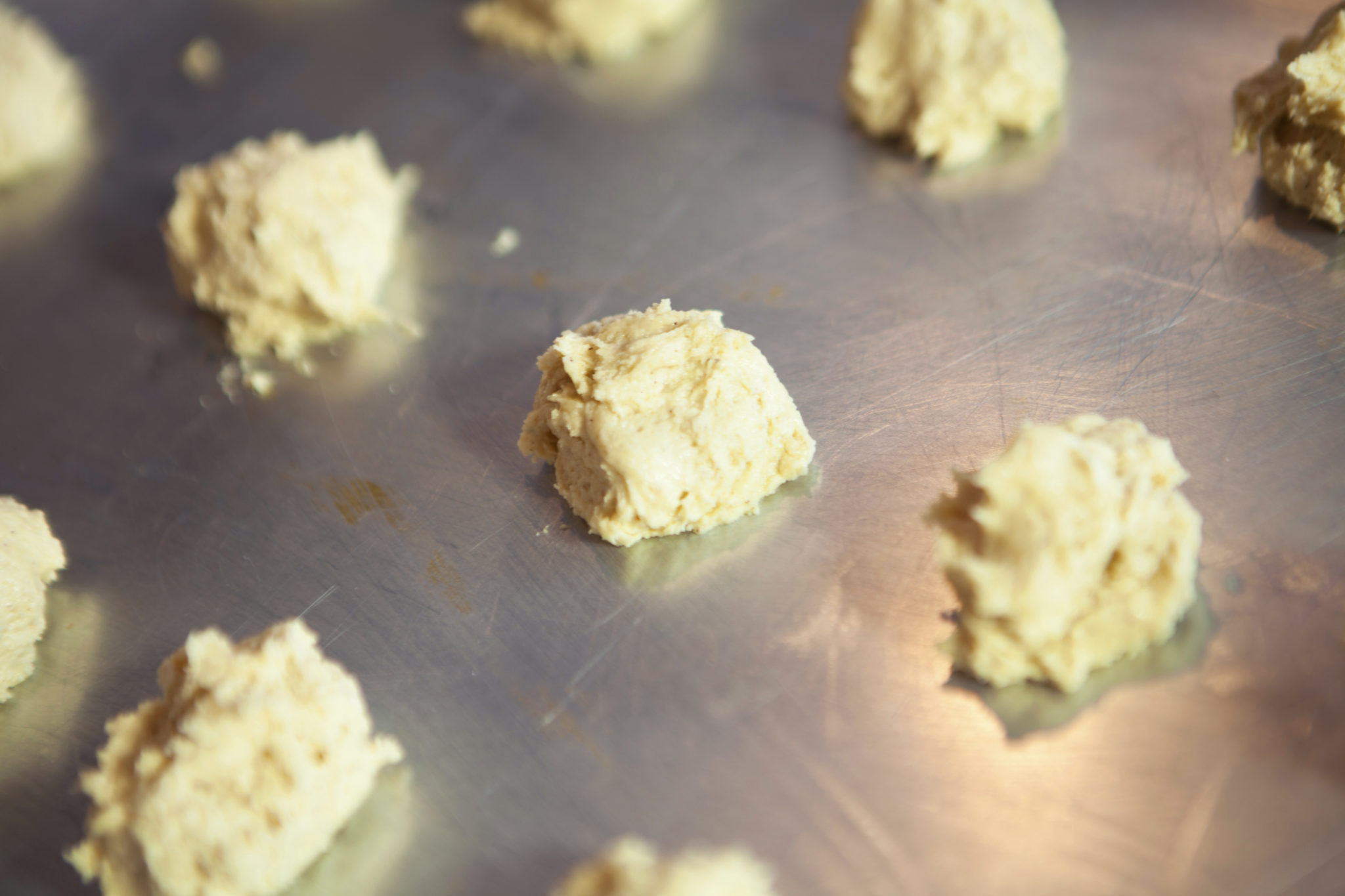 4. Using a tablespoon, scoop out dough and space about 2 inches apart on baking sheet. Bake for about 10-12 minutes or until cookies are very lightly golden brown.