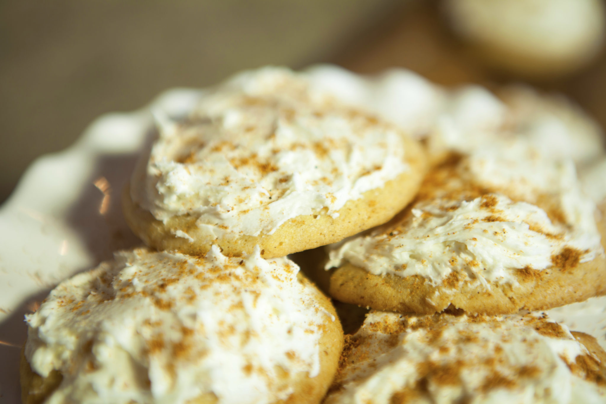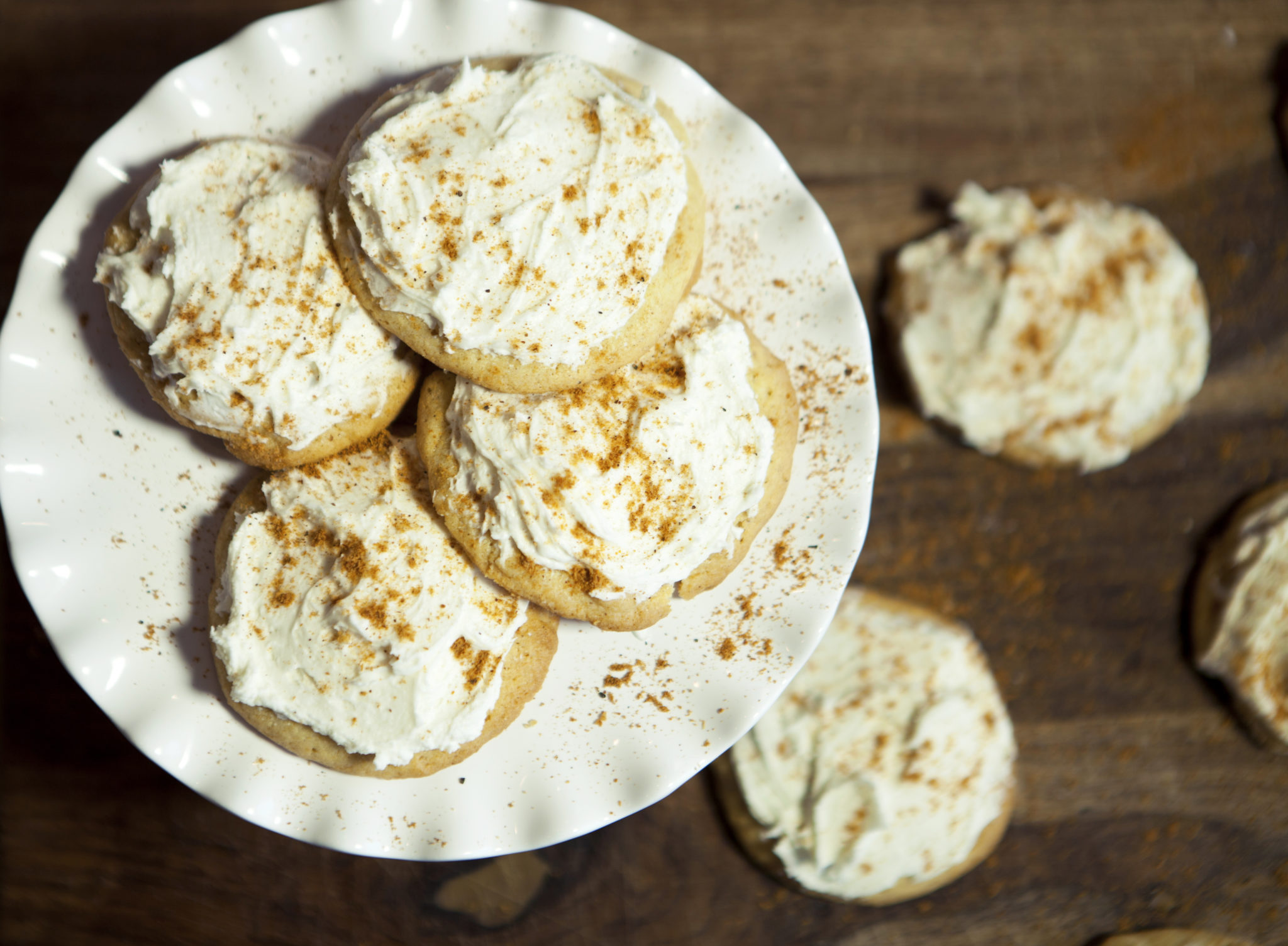 6. When cookies are done, remove from oven and let cool on baking sheet for at least 5 minutes. Transfer to wire rack and let cool completely. When cooled, add frosting and sprinkle with a pinch of nutmeg. Enjoy!
