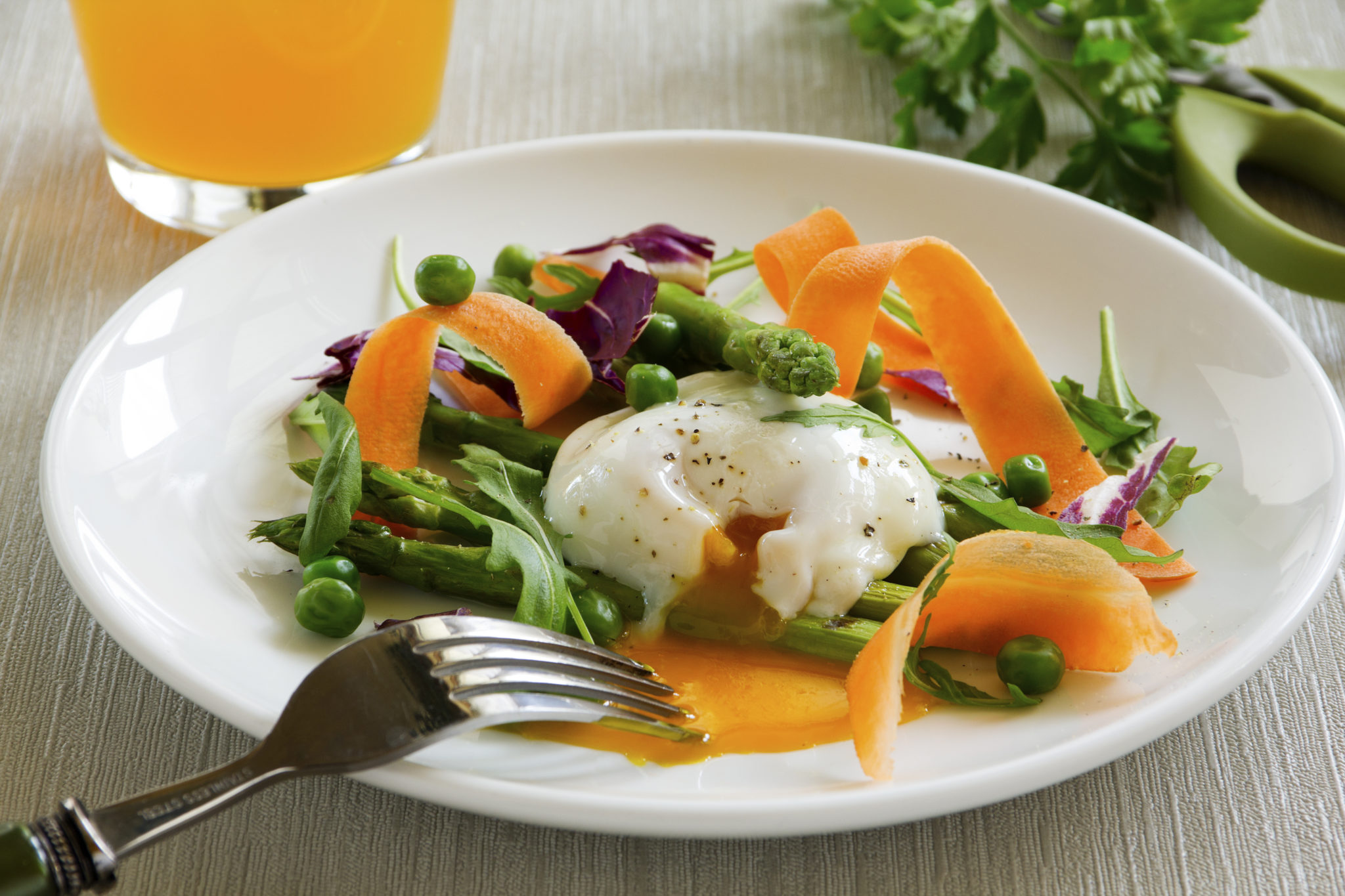 Any culinary or pastry arts student will tell you that poaching an egg seems simple, but the first time you try you will need to have a dozen eggs at the ready, just in case. If you plan on being a breakfast cook, my suggestion is to master the poached egg. Start by adding 2 tbsp of vinegar and a large amount of salt to a pot of water and bring it to a soft simmer. Ideally you are looking for the water to be around 180 degrees. Crack 1 egg into a small bowl or ramekin and using a large spoon, swirl the water in one direction, then add your egg to the center of the pot. Never let the water come to a boil and be careful not to over cook your egg. When you check the egg, you are looking for the bottom of it to be cooked, but the center still liquid. When the egg is finished, remove it from the water using a slotted spoon and dab it on a napkin to remove excess water. If you are making Eggs Benedict, you would toast an english muffin, place a piece of Canadian bacon on top, followed by your poached egg and topped with a hollandaise sauce.